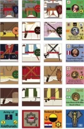 2) 720 die cut counters representing the forces of the various kingdoms and trading companies. Scale is 'mixed'. Some counters represent battalions or even smaller groupings while others are brigade-sized formations of varying strengths. Many new kingdoms are introduced, but the counter set also expands the power of the trading companies and revamps the Maratha OOB.
